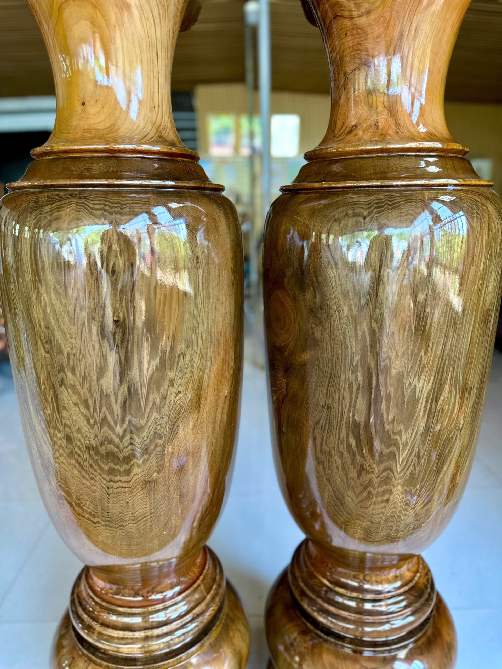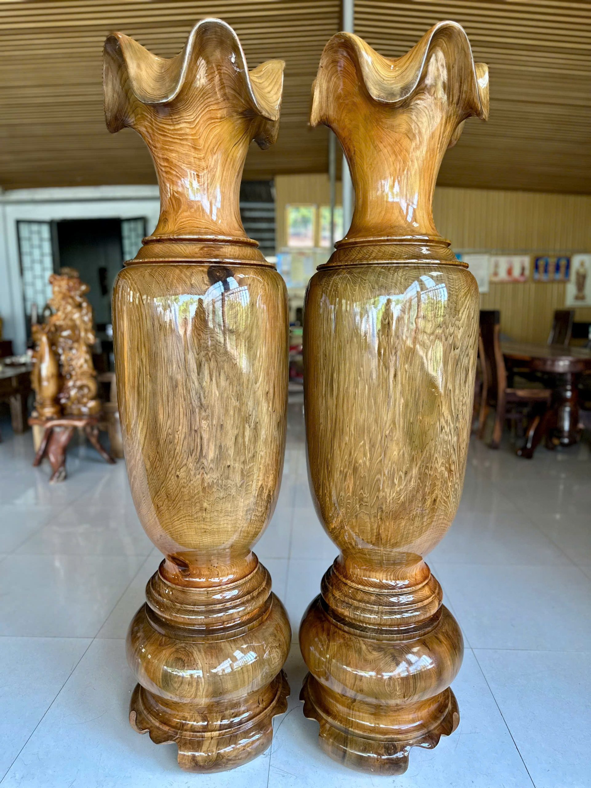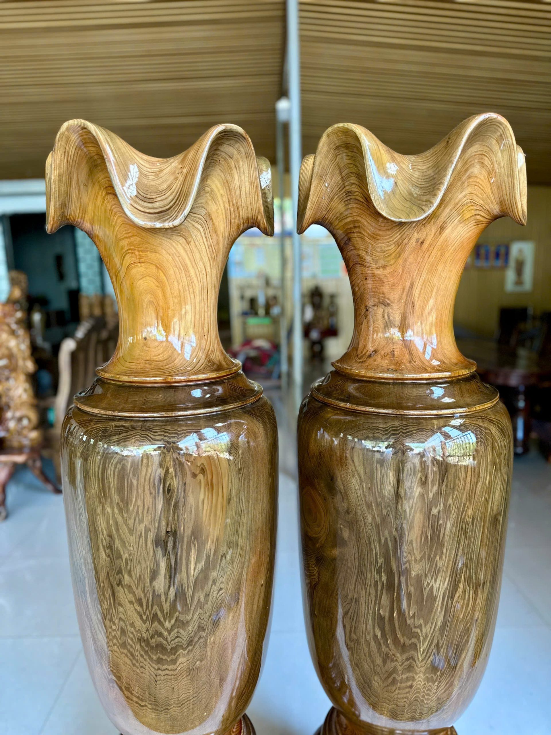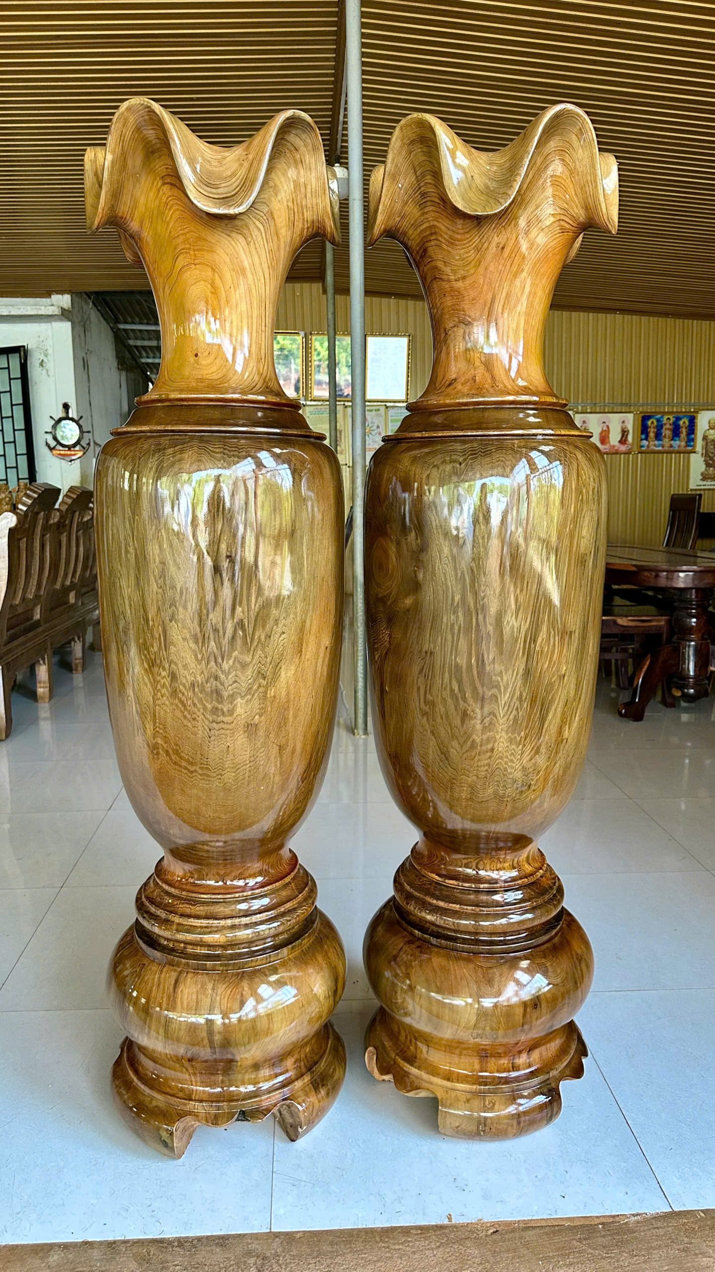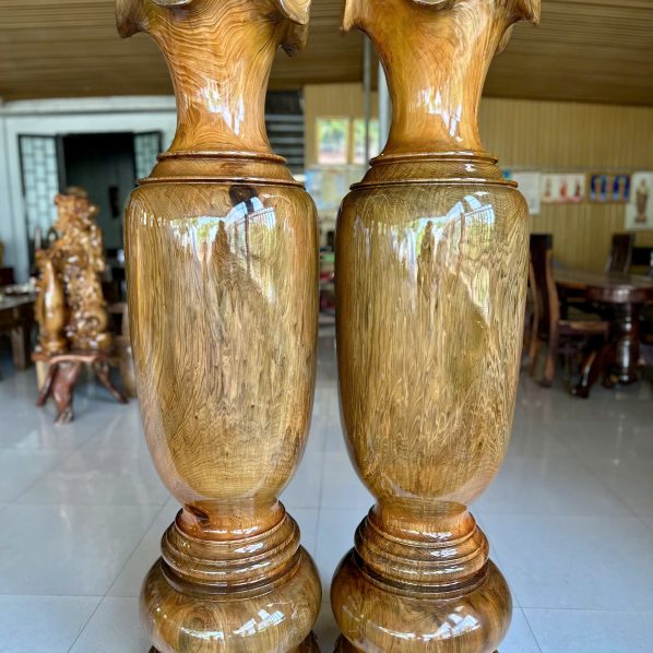 Lục bình có kích thước cao 1m60, đường kính 41cm, mang lại sự bề thế và sang trọng cho không gian. Kích thước này phù hợp để đặt ở các vị trí nổi bật trong nhà, tạo điểm nhấn tinh tế mà không chiếm quá nhiều diện tích. Từng đường nét trên lục bình được gia công tỉ mỉ, giữ nguyên vẻ đẹp tự nhiên của gỗ, mang lại cảm giác gần gũi nhưng không kém phần đẳng cấp.